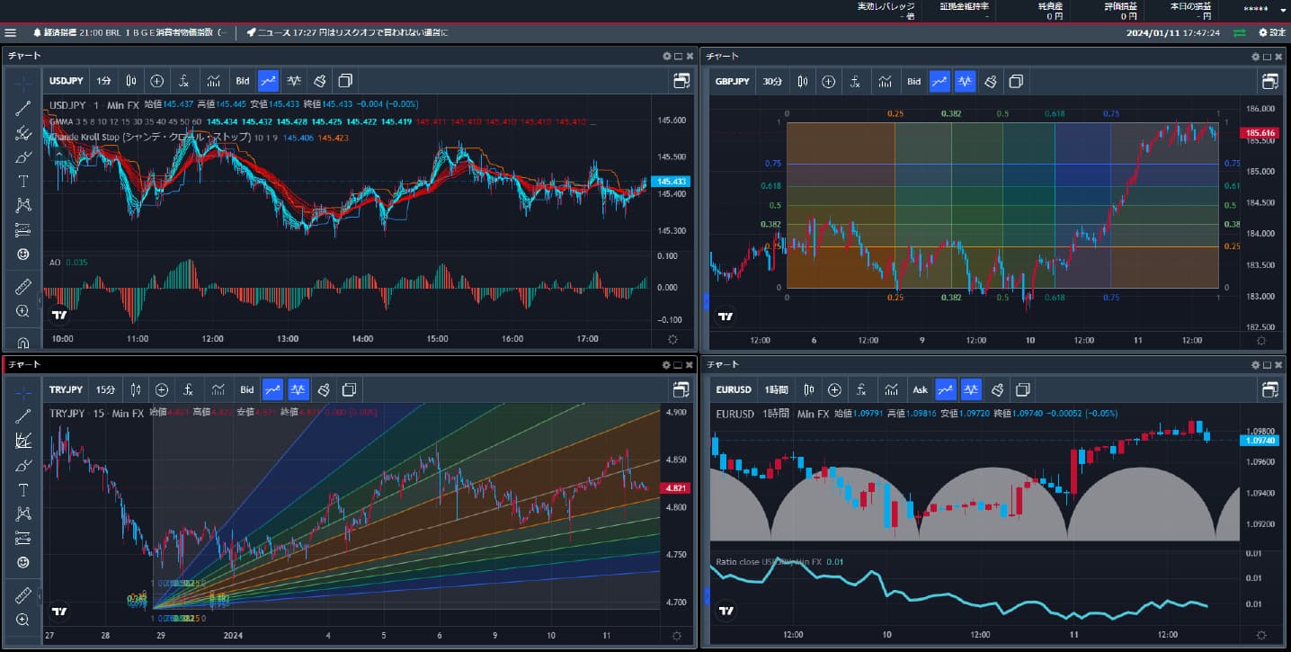 注文パネルやポジション紹介などの画面を並べることも可能です。