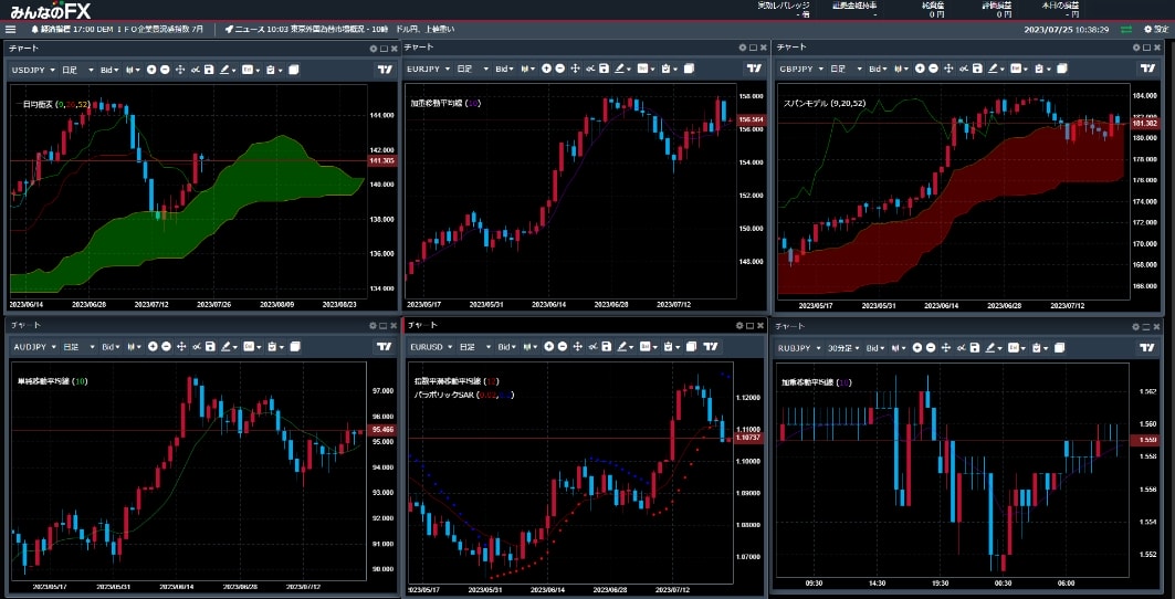 最大で6つのチャートを同時表示することが可能です。