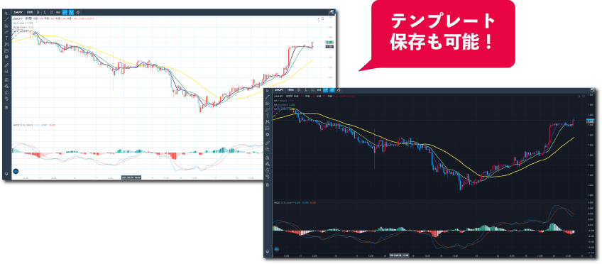 自分好みの描写ツールとインジケーターの組合せをテンプレートとして保存できます。