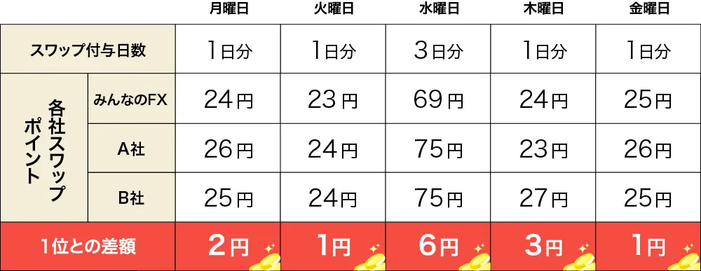 ※上表は実際のスワップポイント、付与日数とは異なります。