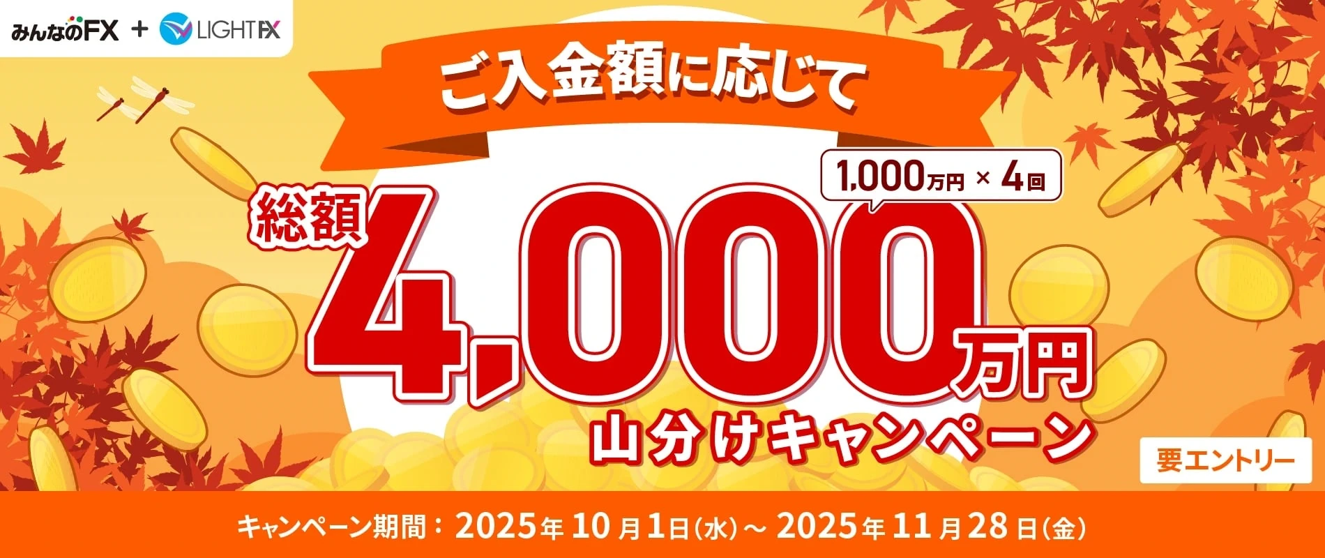 「みんなのFX」および「LIGHT FX」のいずれか片方でのキャンペーンの申込みでは両口座でのキャンペーン申込とみなすことはできません。各キャンペーン申込フォームから申込みいただく必要がございます。