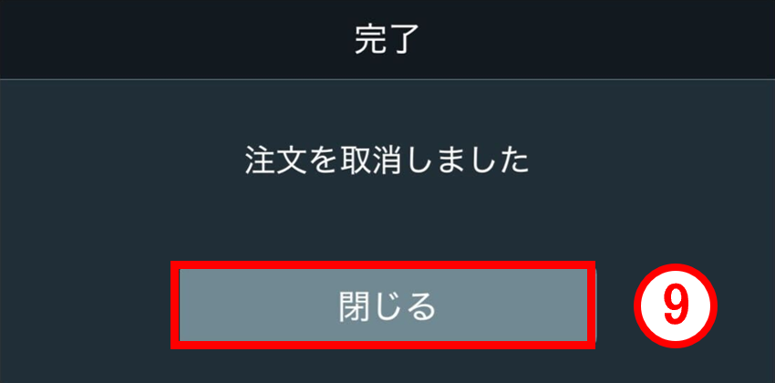 「注文一括取消実行」をタップすると、注文取消を実行します。