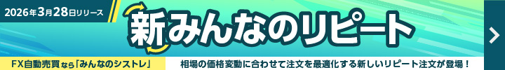 外国為替相場では、明確なトレンドが発生するのは2~3割で、残りの7~8割はレンジ相場と言われています。リピート注文は、レンジ相場に強い取引手法ですが、裁量で取引するためには大量の注文を毎回取引画面で設定する必要があるため面倒です。そこで、自動売買でのリピート注文が注目を浴びています。「みんなのシストレ」でも、1番人気がある自動売買プログラムは、リピート注文型のものです。とくに、メキシコペソ/円やトルコリラ/円など高金利通貨のリピート注文は、スワップポイントによる収益も期待できるため人気があります。