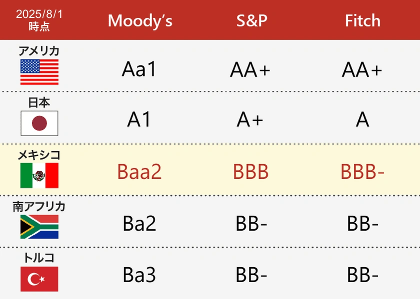 貿易相手国で見ると、メキシコのその大多数を米国が占めていることも見逃せません。前述したNAFTA発効以降、メキシコの輸出全体の約8割を占めており、輸入においても約4割を占めています。米国との結び付きが非常に強いメキシコは、「良くも悪くも米国の影響を受けやすい」という傾向が見られます。2025年の米関税政策も、メキシコ経済に下方向圧力を与える公算が大きく、市場もその影響を注視しています。