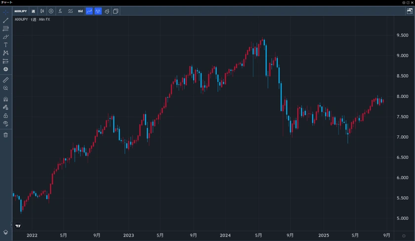 メキシコの政策金利は7.75%(2025年8月現在)で、メキシコペソ/円のスワップポイントは魅力的です。メキシコペソ/円はスプレッドコストが低いため、短期的な値動きを狙ったトレードも可能なオールラウンドな通貨ではありますが、低金利が当たり前になっている多くの国内投資家はスワップポイントを狙ったメキシコペソ/円投資をしています。こうした長期保有を想定してスワップポイントで収益を狙うことも重要な戦略です。長期保有を前提にトレードすることで資金管理もしやすくなり、短期的な値動きに右往左往しなくて済むことも利点の一つです。みんなのFXでは「スワップシミュレーション」を提供しており、1か月~35年の期間でスワップ収益を簡単に計算することができます。皆さんも一度、みんなのFXでメキシコペソの魅力に触れてみてはいかがでしょうか。